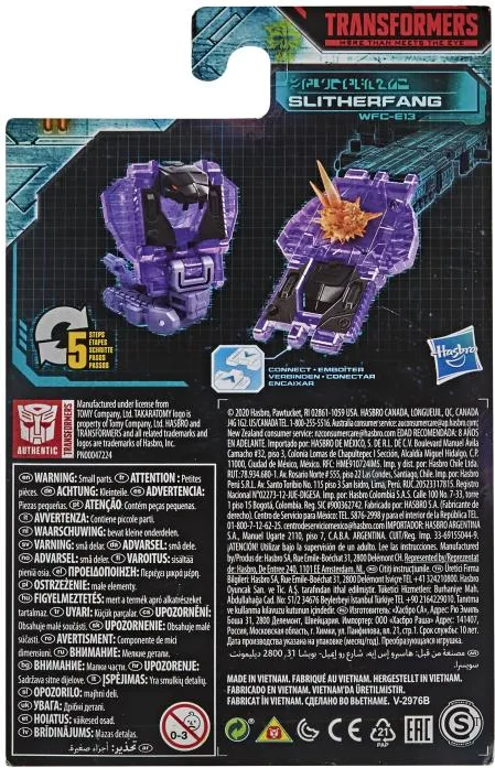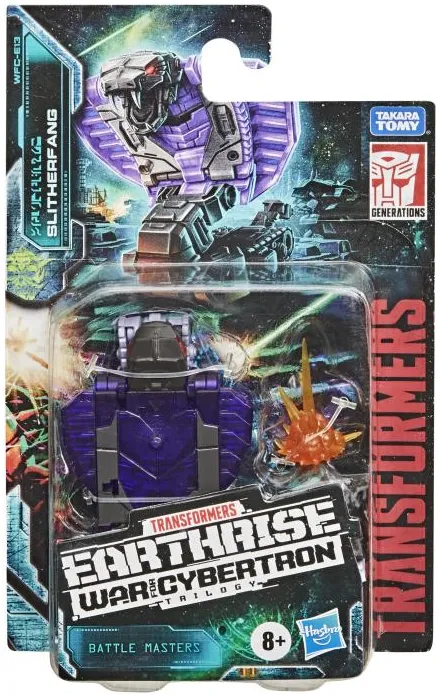 Transformers War for Cybertron Earthrise WFC-E13 Slitherfang is Battle Masters and stands approximately 1.5-inches tall in robot mode. WFC-E13 Slitherfang transforms from Shield to robot and back and is screen accurate to the Transformers: War For Cybertron Earthrise Chapter Netflix Animated Series. Each War For Cybertron figure jumps out of the animated series and into your collection with a high attention to detail and accurate color schemes reflecting their appearance in the War for Cybertron: Earthrise series.