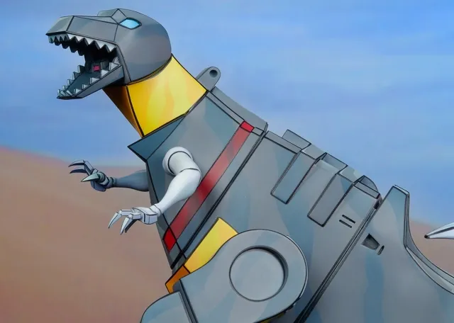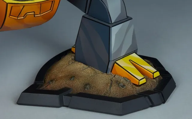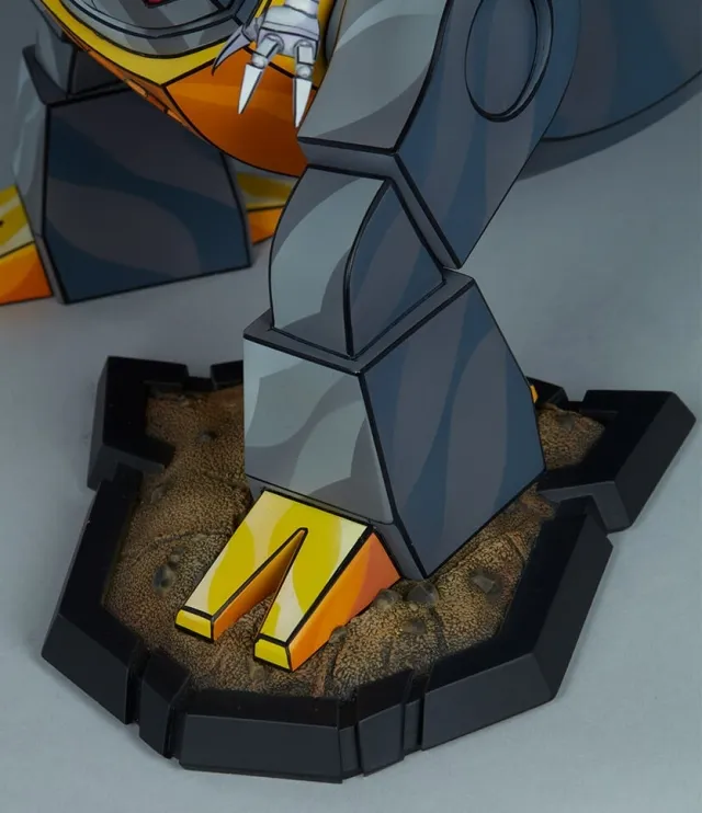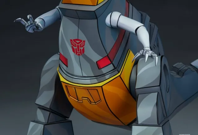 The Grimlock Statue features a unique cel-shaded deco application that captures the iconic two-dimensional style of the Generation 1 Transformers cartoon as a three-dimensional collectible. Grimlock’s dinosaur form is detailed with grey and yellow tones as well as red accents and a red Autobot logo on his chest to show the warrior’s allegiance. The Transformers statue also includes two portraits to choose from, including a closed mouth and an open mouth roar, allowing fans to craft their ultimate Dinobot display.