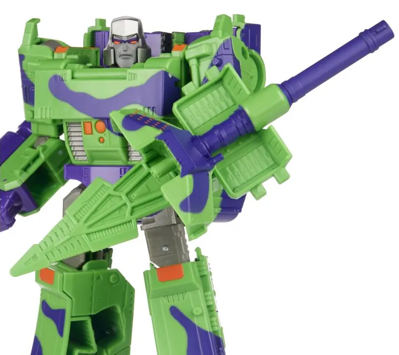 This special edition WFC-GS14 Megatron figure is inspired by the 1992 G2 toy release, featuring purple and green camouflage deco inspired by the original release.