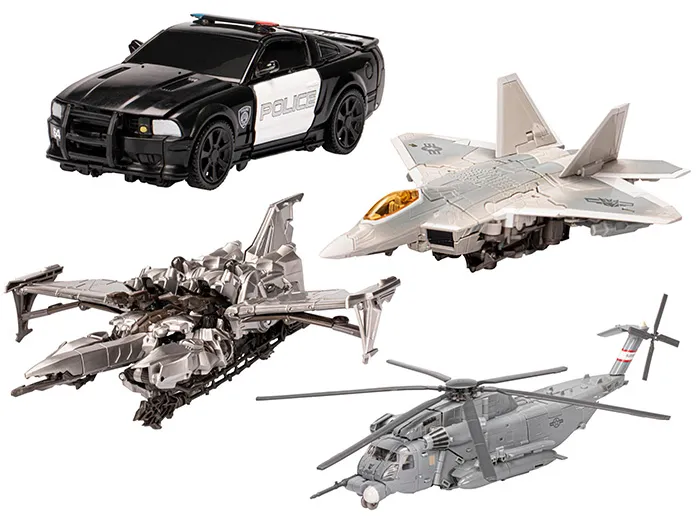 Bring the epic action of the Transformers movies from the big screen into your collection with the Transformers Studio Series Transformers Movie 1 15th Anniversary Decepticon Multipack! The Decepticons destroy anything in their way to gain control of the AllSpark. Transformers Studio Series toys are collectible action figures for 8 year old boys and girls that feature movie-inspired details and accessories. This multipack comes with Voyager 54 Megatron, Voyager 06 Starscream, Deluxe 28 Barricade, and Leader 08 Decepticon Blackout action figures. Convert the action figures from robot to vehicle mode and display with the included extra-large reversible backdrop scene. Transformers action figures for boys and girls make great gifts!