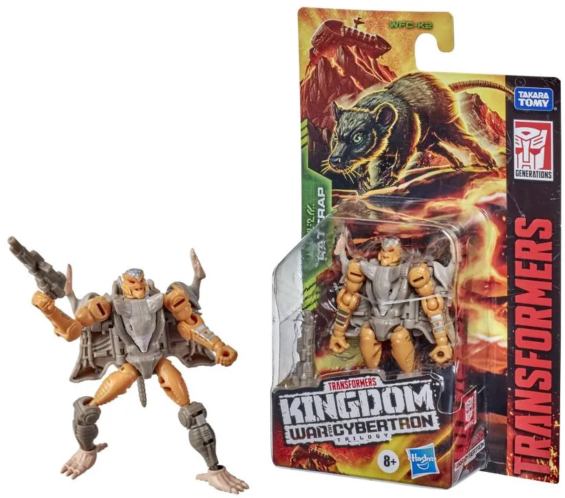 Transformers War for Cybertron Kingdom WFC-K2 Rattrap is Core Class and stands approximately 3.5-inches tall in robot mode. WFC-K2 Rattrap transforms from Rat to robot and back and is screen accurate to the Transformers: War For Cybertron Kingdom Chapter Netflix Animated Series. Each War For Cybertron figure jumps out of the animated series and into your collection with a high attention to detail and accurate color schemes reflecting their appearance in the War for Cybertron: Kingdom series.