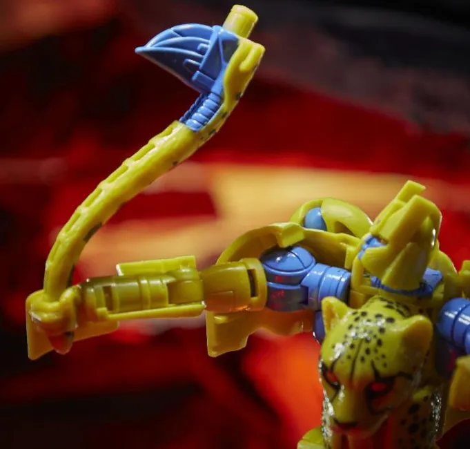 Transformers WFC Kingdom Deluxe Cheetor is very posable with this weapon accessory!