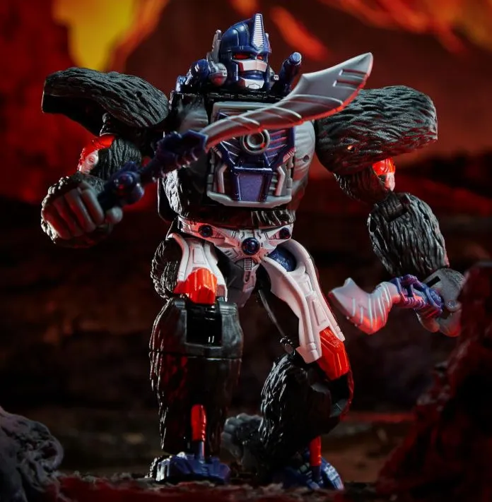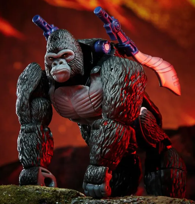 Transformers Kingdom Voyager Optimus Primal beast mode with molded gorilla fur
