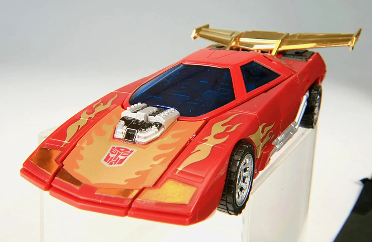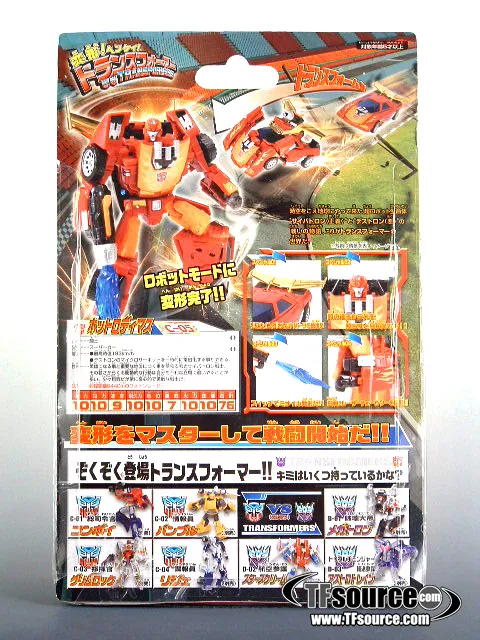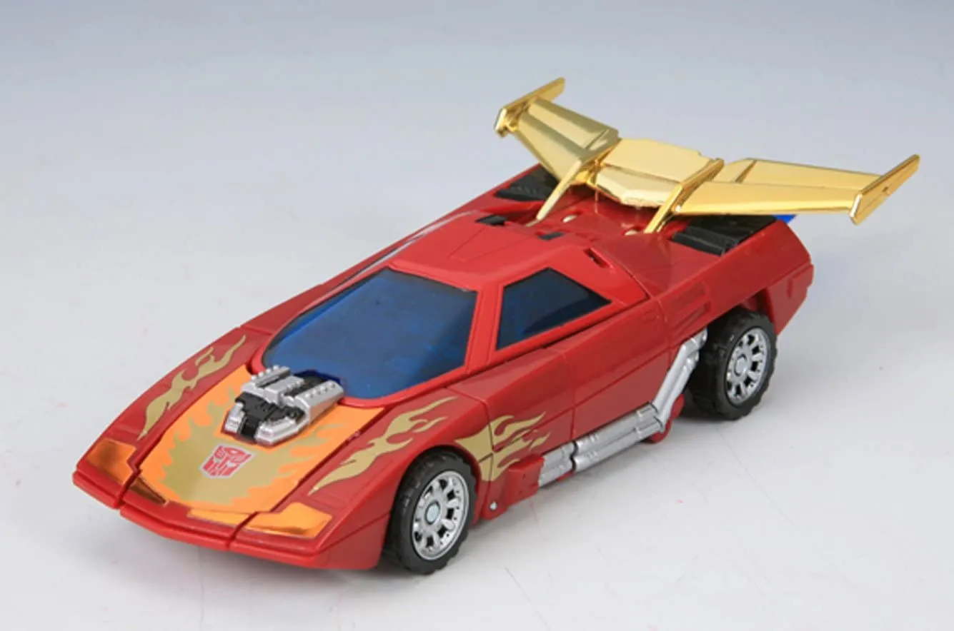 C-05 Hot Rodimus is part of Takara Tomy's Henkei Classics line which was available exclusively in Japan. C-05 Hot Rodimus is Deluxe Class-scaled, stands approximately 6-inches tall in robot mode and transforms from a Sports Car to robot and back.