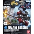 The Amazing Booster is a weapons package consisting of a long rifle, pistols, launchers, heavy thrusters, shield, hand held blades that is compatible with many 1/144 HG Gundam models. It can be used on the new GunPla Build Fighters line of kits or on any other kit to create new custom units!
