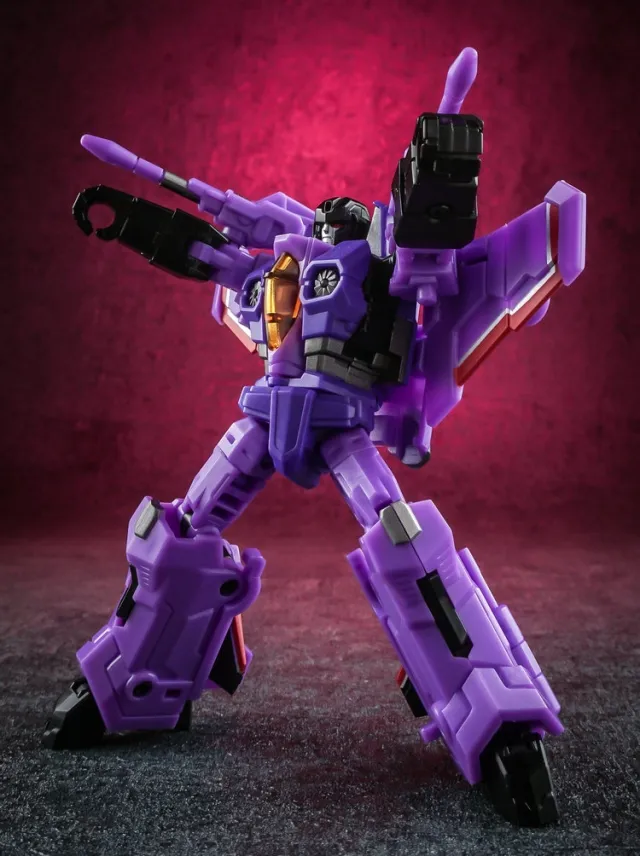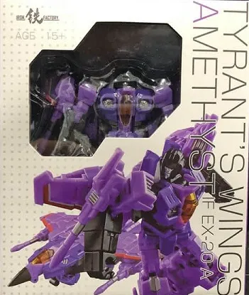 Iron Factory's IF-EX20A Amethyst is made of durable plastic and features a high level of articulation and is highly posable. The figure is built to a high standard and meticulously precision engineered to the Iron Factory standards. IF-EX20A Amethyst is a legends scale figure standing 3.9-inches tall in his robot mode and can quickly transform between a Fighter Jet and his robot form.