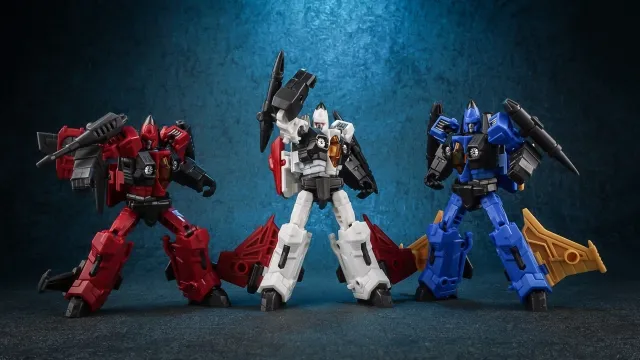 Iron Factory's IF-EX20F Tyrants Fang Set of 3 Figures is made of durable plastic and features a high level of articulation and is highly posable. The figure is built to a high standard and meticulously precision engineered to the Iron Factory standards. IF-EX20F Tyrants Fang Set of 3 Figures is a legends scale figure standing 3.9-inches tall in his robot mode and can quickly transform between a Fighter Jet and his robot form.