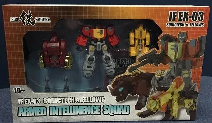 Start your Iron Factory 3rd Party Figures collection today with the IF-EX03 Sonictech Bassrhino Leotrible Set of 3 figure today. Get yours along with other popular Iron Factory figures today at TFSource, your source for 3rd Party Action Figures and collectible figures!