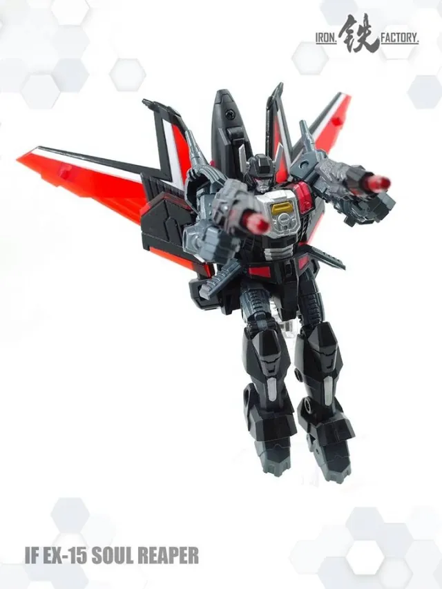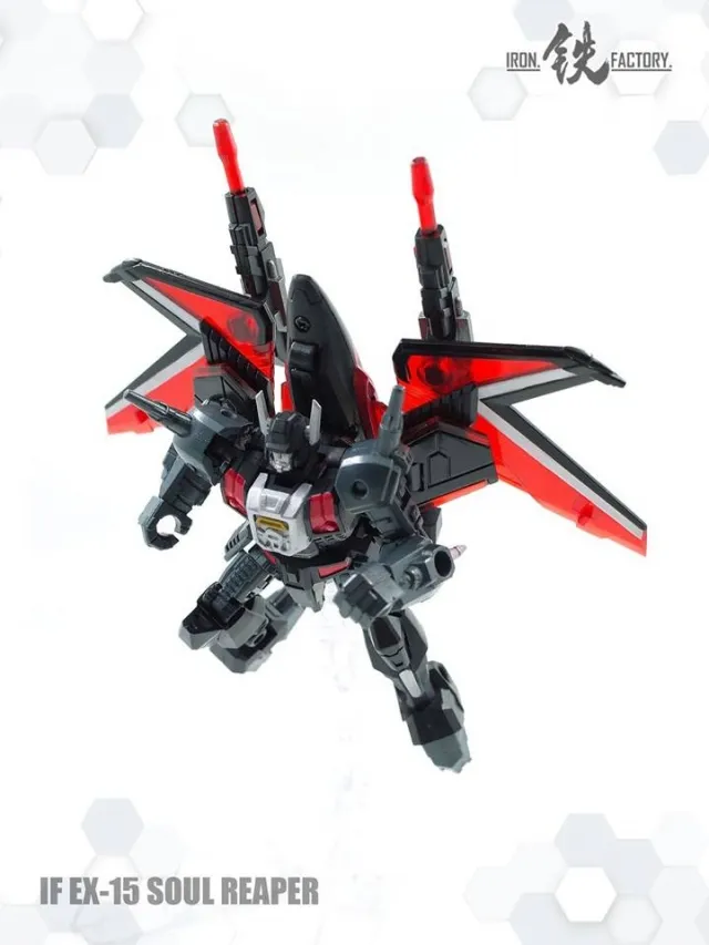 Iron Factory's IF-EX15 Soul Reaper is made of durable plastic and features a high level of articulation and is highly posable. The figure is built to a high standard and meticulously precision engineered to the Iron Factory standards. IF-EX15 Soul Reaper is a legends scale figure standing 4.0-inches tall in his robot mode and can quickly transform between a Jet and his robot form.