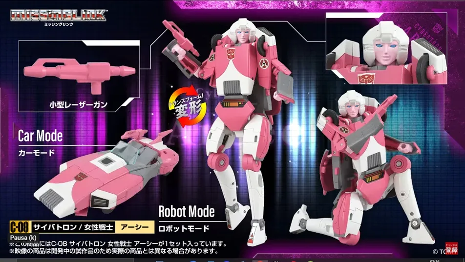 Transformers Missing Link C-08 Arcee in her vehicle alt mode!