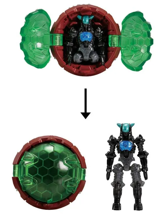 The figure features sharp blades on both shoulders and is equipped with a wide range of movement to allow it to be placed into a variety of action poses. The figure also includes a built-in capsule where a small Waldaroid figure can fit.