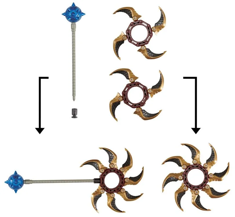 The main weapon for this the Waruderaros unit is a mace, while the shoulder blades can be removed and added to the mace or to form two spinning blades.