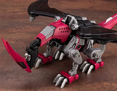 The Empire's state-of-the-art supersonic biomechanical fighter jet! The dragon-type Zoid Reddra joins the HMM series as the first flying Imperial Zoid. Hidden within the Zoid's beautiful red silhouette is a wealth of articulated features. The 'Retractable Cutting Wings' can be deployed without interfering with the movement of the tail, and the back intake and nozzle can be replaced with joint caps.