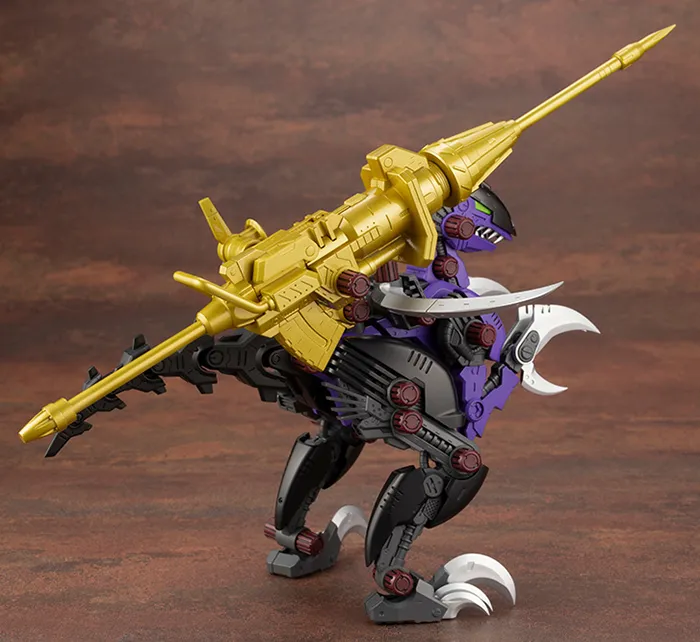 The cockpit hatch on the head can be opened and closed, allowing for a pilot figure to be placed inside. The Zoid Core inside the torso is removable. The Counter Scythes on the back support an HMM-exclusive extendable feature as well as new joints, allowing for more dynamic poses. In addition to the symmetrical upper arms, another set of upper arms with 3mm connection points on the elbows are included. Combine the parts to customize the model and increase its hardpoints. The part on the lower torso can be exchanged to one with a 3mm connector point, making the model compatible with a variety of bases.