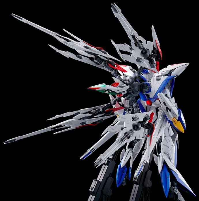 Upgrade the 1/100 scale Master Grade Eclipse Gundam with this exclusive expansion set! This Maneuver Striker Pack adds four booster units to the Eclipse Gundam.