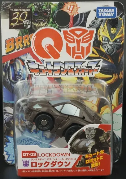 Transformes Q-Series is a Japanese Transformers exclusive series released only in Japan by Takara Tomy. The Q is an abreviated version of the word Cute and this series is an extension of Takara Tomy's Choro-Q which is a style of super deformed cars that are highly collectible. In the case of Transformers Q-Series each figure features a famous Transformers character from either Generation 1, the Transformers Live Action Movies or the Transformers Alternity Series that transforms from a car into each character's robot mode.