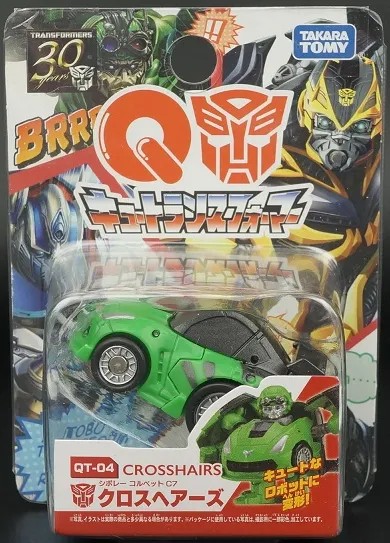Transformes Q-Series is a Japanese Transformers exclusive series released only in Japan by Takara Tomy. The Q is an abreviated version of the word Cute and this series is an extension of Takara Tomy's Choro-Q which is a style of super deformed cars that are highly collectible. In the case of Transformers Q-Series each figure features a famous Transformers character from either Generation 1, the Transformers Live Action Movies or the Transformers Alternity Series that transforms from a car into each character's robot mode.