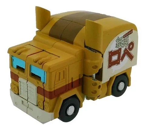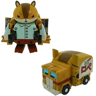 Akira Senpai is a super mini sized Transformers Q-Series figure that stands approximately 2" tall in robot mode. Figure transforms from robot to Garbage Truck and back.
