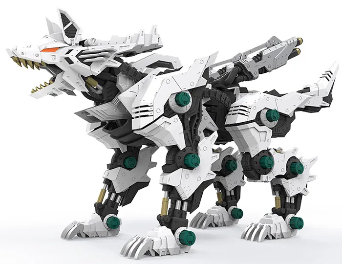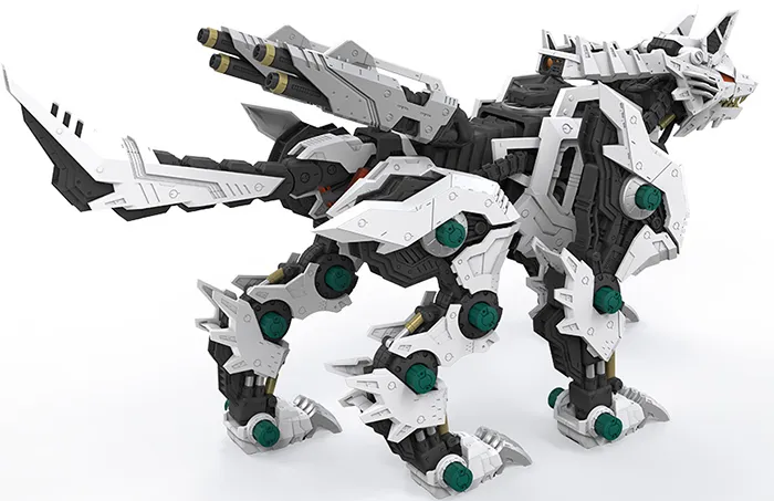 A constant favorite in wishlist surveys, the Wolf Type Zoid Konig Wolf is finally joining the HMM Zoids lineup! Masashi Katahira has given this Zoid a fearless new HMM look that also blends nicely with its original design. The new design and separation of parts make it not only easy to color-code and assemble but also put into intimidating, action-packed poses.