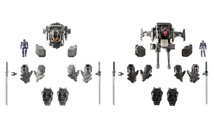 A new coloring bullet module for the Argo Versaulter and Garuda Versaulter (both not included) and a new shoulder and leg mounting parts are now available as a set! The head of the bullet module is newly modeled! Two Diaclone members Ver. 2.2 are included.