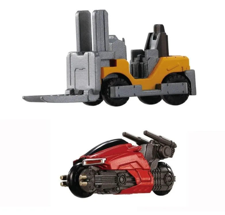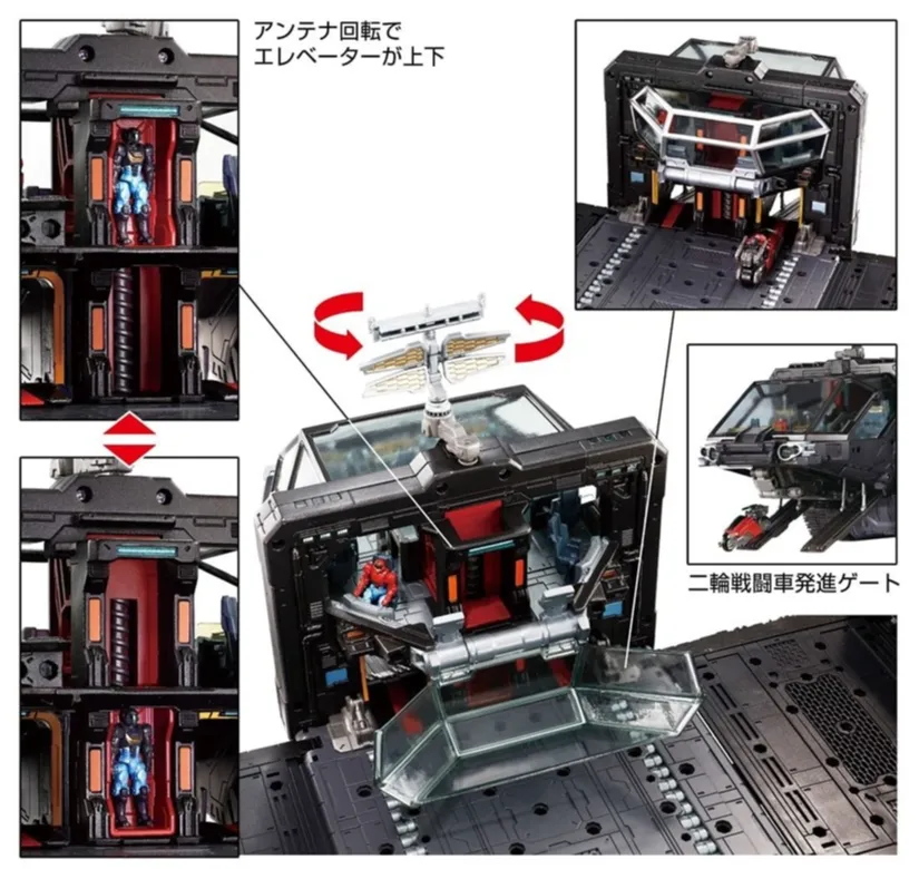 The trailer-type body composed of a cockpit and container is equipped with a variety of mechanisms that evoke various battle situations and expand the imagination. It includes 2 Diaclone members, a vehicle for working in a container, and a two-wheeled combat vehicle.