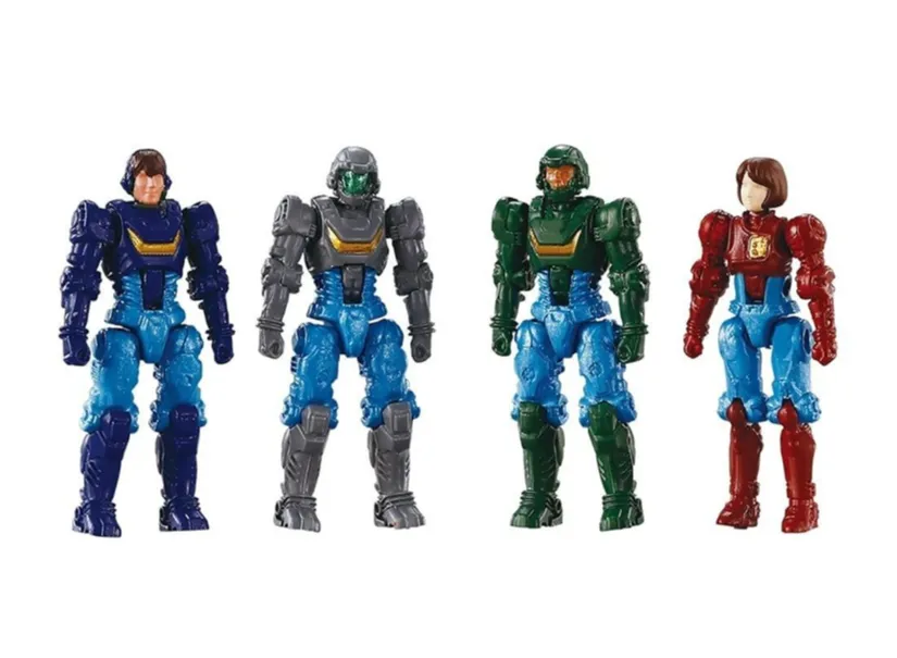 A 1/60 scale Diaclone set of figures! The body is about 3 cm tall and equipped with 9 movable joints, allowing you to enjoy a variety of action poses and various diaclone machines! It is also possible to stand on an iron plate with a very small magnet built into the sole of the foot!