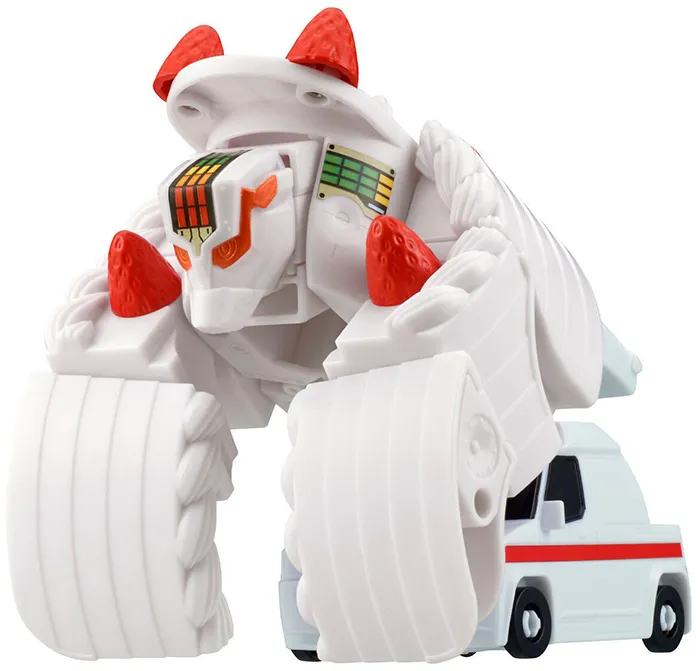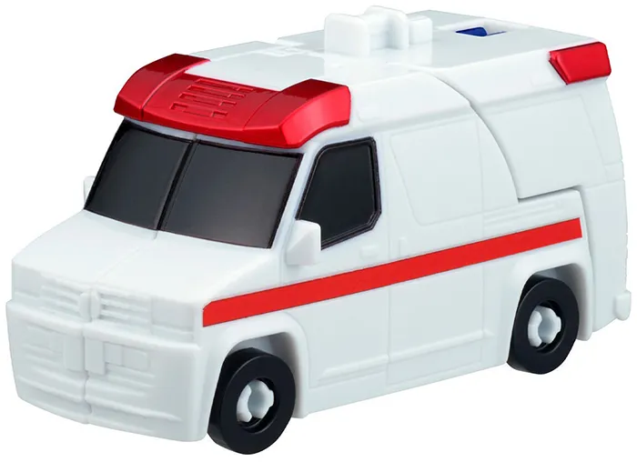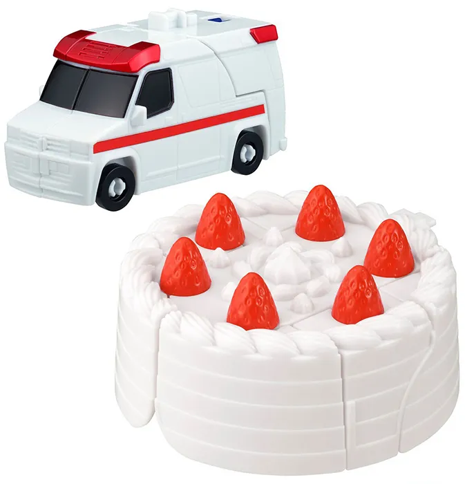 With this Unitrobo, you can combine an ambulance with a cake, and see them immediately change shape. Match the joints together to speedily reveal the robot's head, shoulder, and waist.
