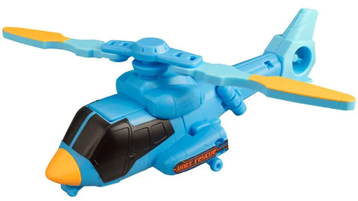 With this Unitrobo, you can combine a helicopter with an ice cream cone, and see them immediately change shape. Match the joints together to speedily reveal the robot's head, shoulder, and waist.