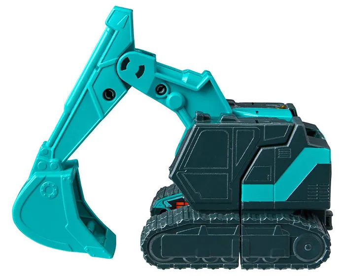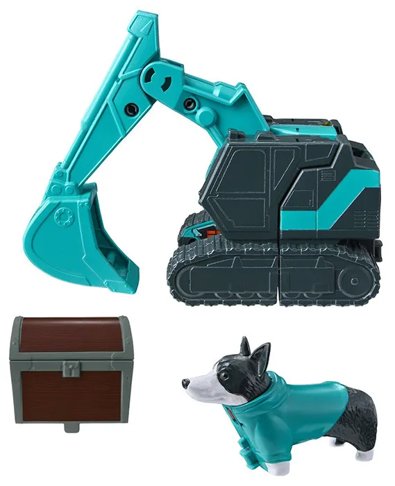 With this Unitrobo, you can combine an excavator, a treasure chest, and a dog and see them immediately change shape. Match the joints together to speedily reveal the robot's head, shoulder, and waist.