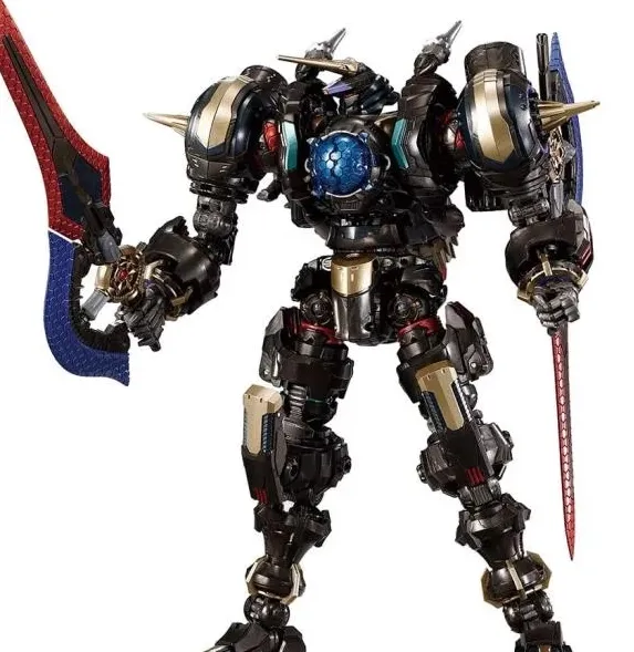 Waruder Legion is a mobile giant with tremendous destructive power, completed by the flexible combination of the accompanying support mecha and the variable mobile limbs . The core is equipped with a joint movement mechanism that is more expressive than the conventional type, with the addition of double joints in the arms and abdominal joints that swing back and forth. The final form, which is composed of a brutal head unit (a new monocular head) with a sharp corner and massive and stylish limb units, has been updated to the largest volume in the series. The included giant weapon is made up of subdivided parts and can be customized by recombining it into swords, axes, spears, etc.