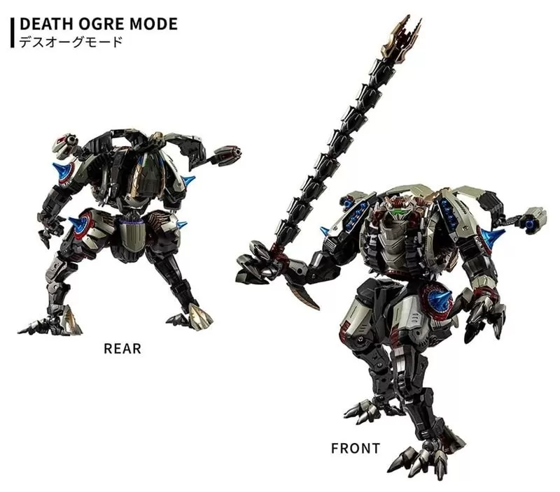 You can easily shift this fully articulated figure between several distinct configurations: including JAGUAR Mode, ZAURER Mode, DEATH OGRE Mode, and DUAL Mode. Limb panels open and fold to reveal internal armament options, while a WARUDAROID PILOT can board the head cockpit.