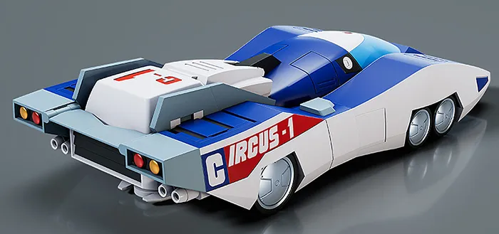 The model stands at about 6.7 inches in height and features several points of articulation. Interchangeable parts to create its Circus 1, Road Attacker and Road Fighter forms are included. Its Combat System (20mm handgun and shield) is included.