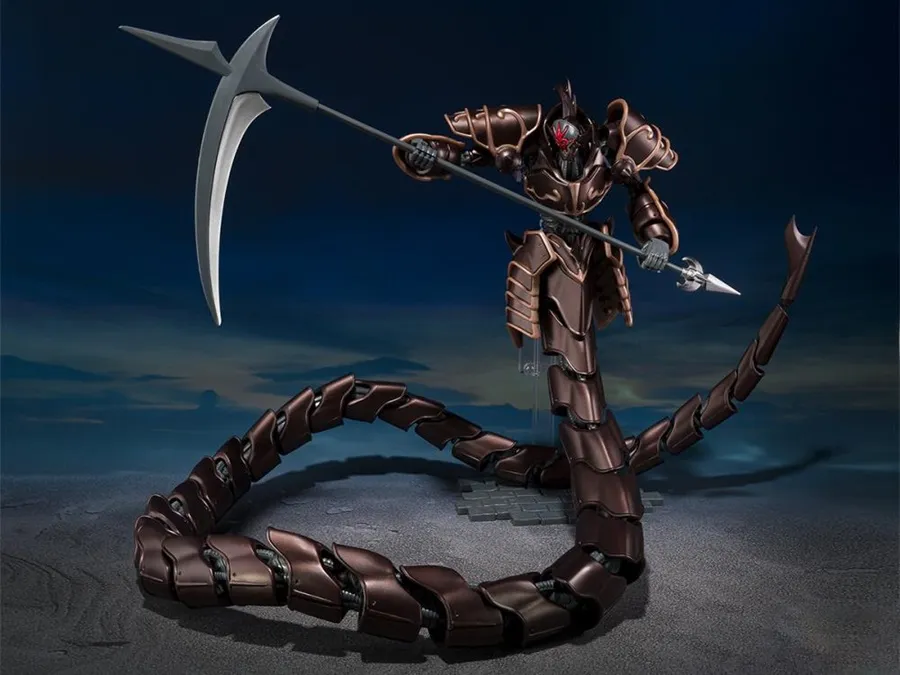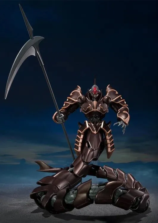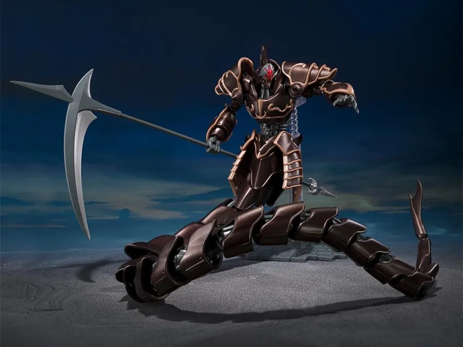 The "Jashinhei" from the OVA "Panzer World Galient: Crest of Iron" will be released with an impressive length of about 550mm. The molding color is a heavy metallic version to commemorate the anniversary. It comes with a massive scythe approximately 256mm in length and an adjustable stand, allowing for the recreation of the dramatic action scenes from the series.