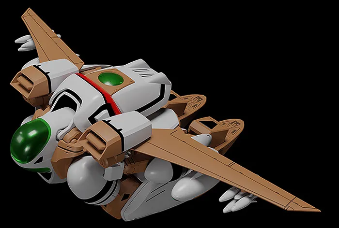 It can be transformed into its Orgroid, Flyer, Gerwalk and Tank forms without using interchangeable parts. Cockpit parts that prioritize proper proportions are included for its Flyer and Gerwalk forms, bringing its appearance even closer to its look from the anime. Missile gun and interchangeable hand parts are included.