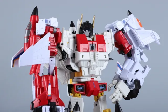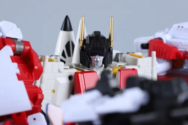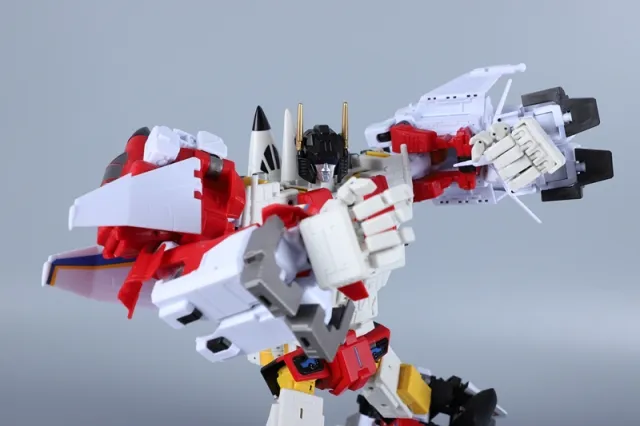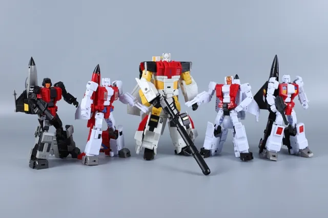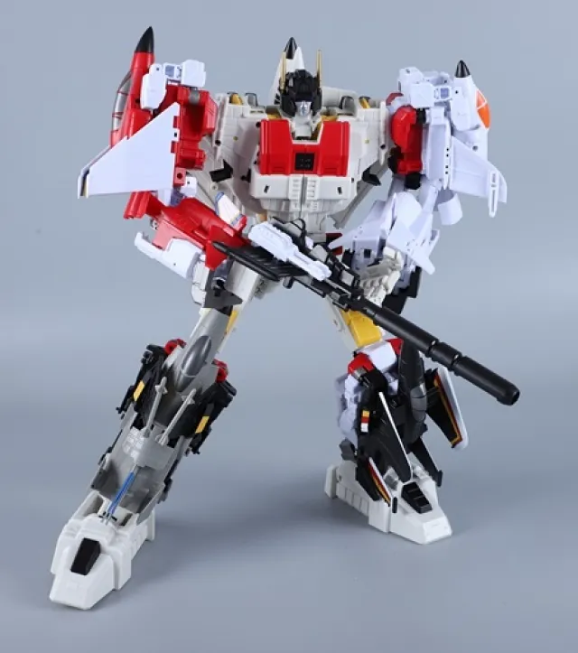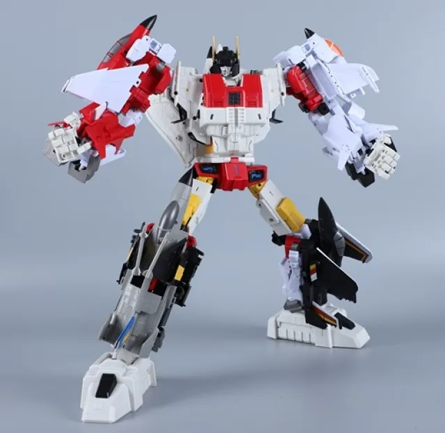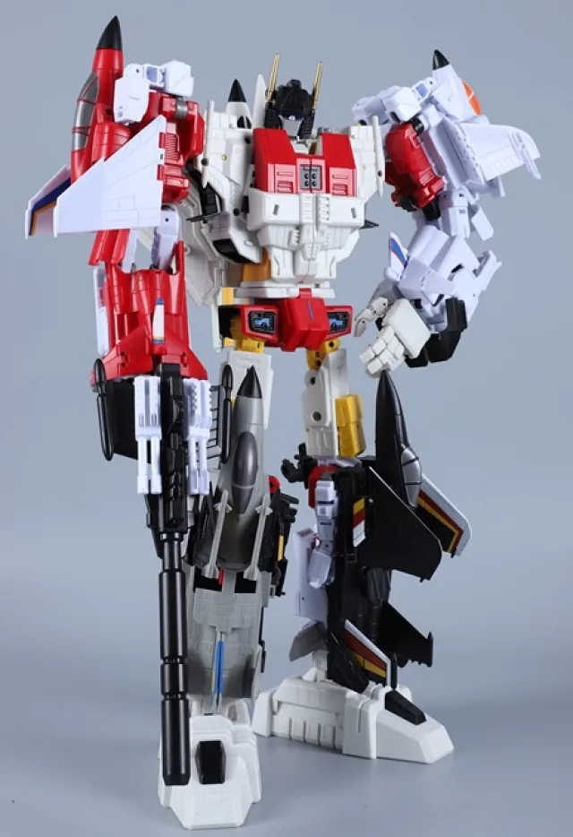 JuJiang - JJ-02 Jet Commander is the combined form of all the supersonic planes that combine together to form the mighty Jet Commander! This set includes all 5 individually packaged jets. Figure is approximately MP Scaled standing 45CM/18" tall in robot mode and scaled well with Power of the Primes Predaking and other figures this size. Figures are made of ABS plastic. Note: Jet Concord comes bagged and not boxed.