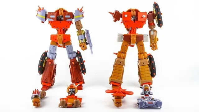 Crash Hog and Dumpyard Set of 2 by KFC Toys is a Masterpiece Scale scaled 3rd party figure that transforms from a Motorcycle to robot and back. Crash Hog and Dumpyard Set of 2 figure stands 8.3 inches tall in robot mode and scales to other figures from KFC Toys and to other Masterpiece Scale scaled figures already in your collection.