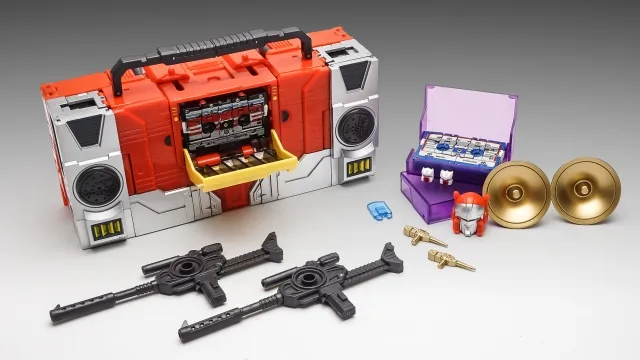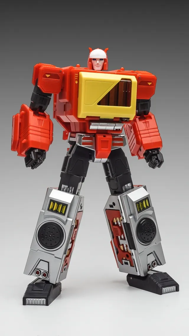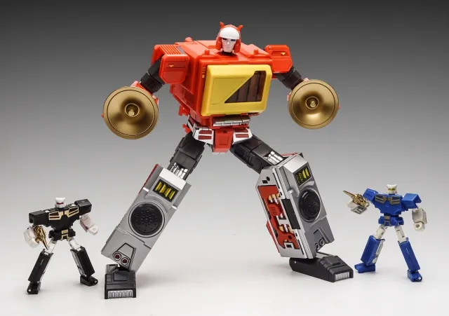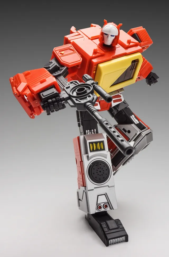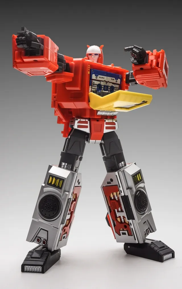 Transistor Orange Movie Version and cassettes by KFC Toys is a Masterpiece Scale scaled 3rd party figure that transforms from a Cassette Player to robot and back. Transistor Orange Movie Version and cassettes figure stands 9.3 inches tall in robot mode and scales to other figures from KFC Toys and to other Masterpiece Scale scaled figures already in your collection.