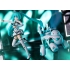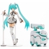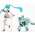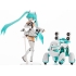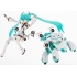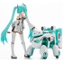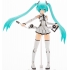 Frame Music Girl Hatsune Miku in a monotone-style and her support robot Tamotu in Miku colors appear together in this cute and stylish set item. Three types of pre-printed face parts are included, plus a microphone and stand, speaker drones with their own special clear bases, and a base for Hatsune Miku herself. Besides the standard arm parts, the model kit also includes sleeveless arm parts in the Hatsune Miku V4X motif.