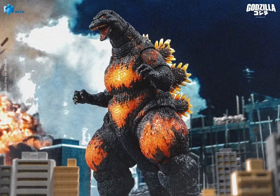 Redefined through advanced design and technical upgrade this Burning Godzilla from Godzilla vs. Destroyah(1995) joins Hiya Toys' Exquisite Basic series of detailed action figures. This is the 22nd entry in the Godzilla series. A war-weathered Godzilla and Godzilla Junior face a foe born of the aftermath of 1954' s Godzilla in an apocalyptic battle with the evil kaiju Destroyah. It depicts the fierce battle between Godzilla and a new monster, Destroyah, a creature born over 41 years from the effects of the Oxygen Destroyer—the underwater weapon introduced in the original film.