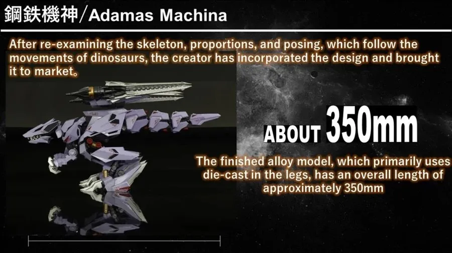 A high-detail, die-cast finished alloy model series '鋼鉄機神/Adamas Machina' introduces the first Zoids installment, 'Berserk Führer.'