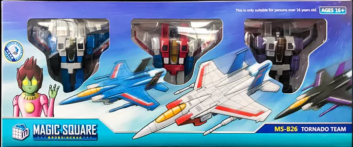 Start your Magic Square Collection today with MS-B26 Tornado Team Set of 3 Figures. Add this highly sought after piece to your collection today at TFSource, your source for 3rd Party collectible transforming figures.