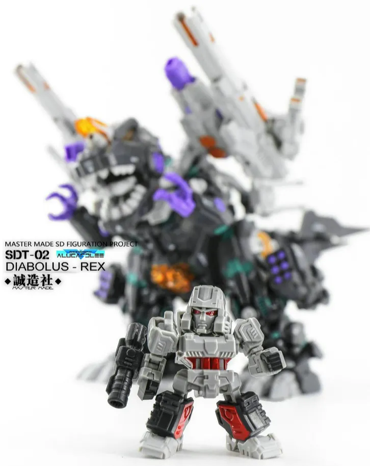 SDT-02 Diablous Rex scales to other figures in Master Mades SDT line and stands 8.27 inches tall in robot mode. Sold separately are alternate weapons, chest plates and heads that are part of Master Made's Statue Series.