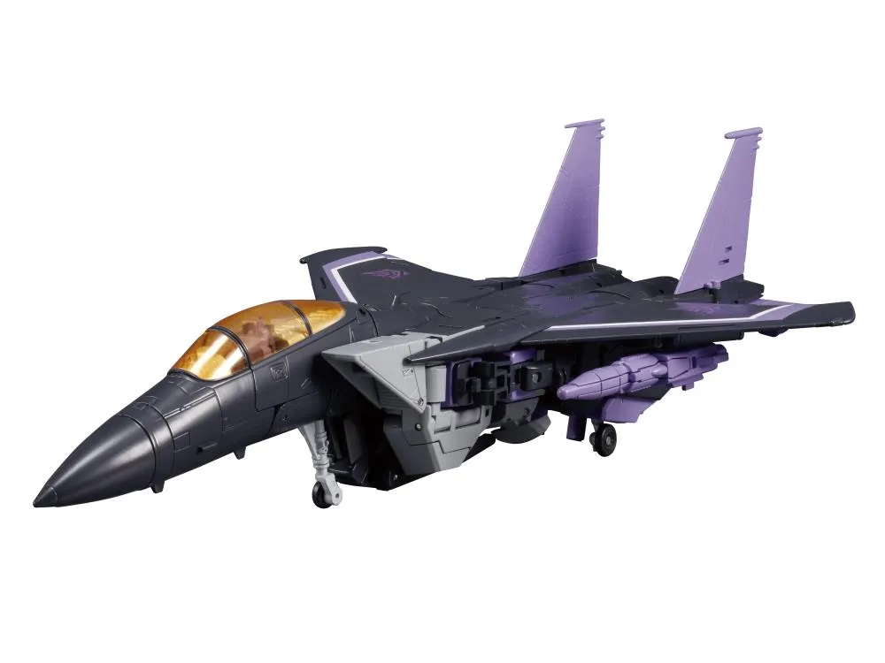 Skywarp is back in the Transformers Masterpiece series as Ver.2.0! Skywarp, who was active in the original TV animated series The Transformers, has been made into a Masterpiece by bringing it closer to the animated version. The F-15 Eagle aircraft is licensed by Boeing.
