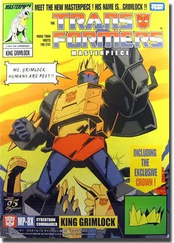 From Takara Tomy Transformers Masterpiece MP-08X King Grimlock Special Limited Edition stands an impressive 9.0-inches tall in robot mode. Not only is this figure incredibly detailed, but it comes packed with an extinsive array of accessories. MP-08X King Grimlock Special Limited Edition is highly articulated and transforms from a Tyrannosaurus Rex to robot and back and as a Masterpiece scaled figure scales with other MP scaled figures in the Transformers Masterpiece toyline. Masterpiece Transformers offer an extreme high attention to detail and jump straight out of the Transformers movies and TV series and into your collection.