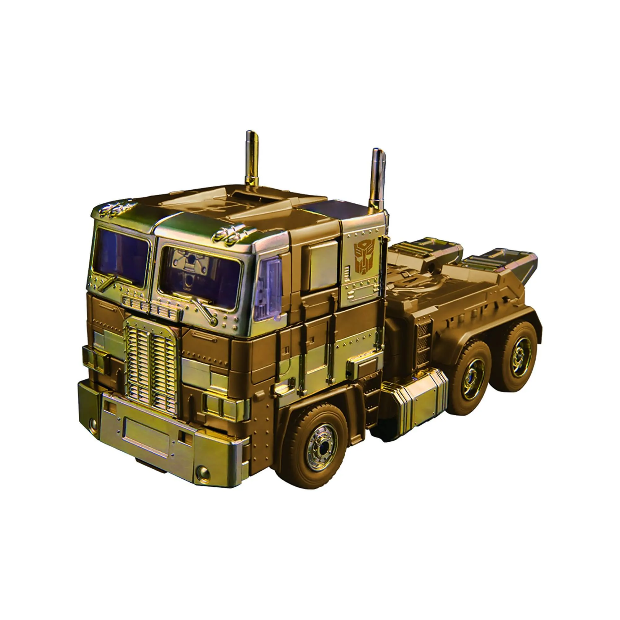 Originally a Wonderfest exclusive, the golden Optimus Prime figure was produced in limited quantities for the celebration of the 35th anniversary of Transformers. This masterpiece figure sees the indomitable leader of the Autobots—the one and only Optimus Prime—covered in gold! Paying homage to the iconic episode of the Transformers cartoon, “the Golden Lagoon,” the figure captures the spirit of the episode while adding a unique spin to the character.