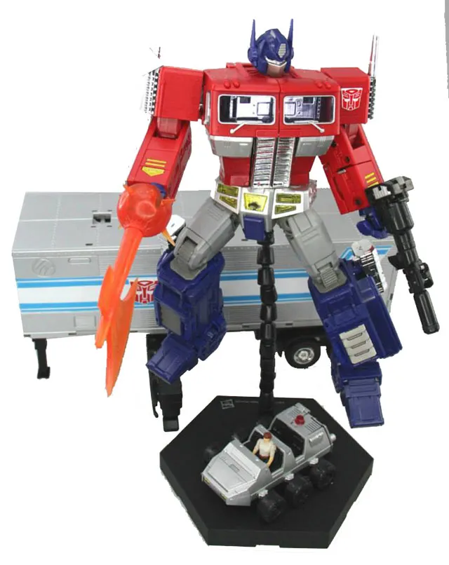 From Takara Tomy Transformers Masterpiece MP-10 Optimus Prime Second Edition and Stand stands an impressive 9.5-inches tall in robot mode. Not only is this figure incredibly detailed, but it comes packed with an extinsive array of accessories. MP-10 Optimus Prime Convoy and Trailer is highly articulated and transforms from a Semi Truck And Trailer to robot and back and as a Masterpiece scaled figure scales with other MP scaled figures in the Transformers Masterpiece toyline. Masterpiece Transformers offer an extreme high attention to detail and jump straight out of the Transformers movies and TV series and into your collection.