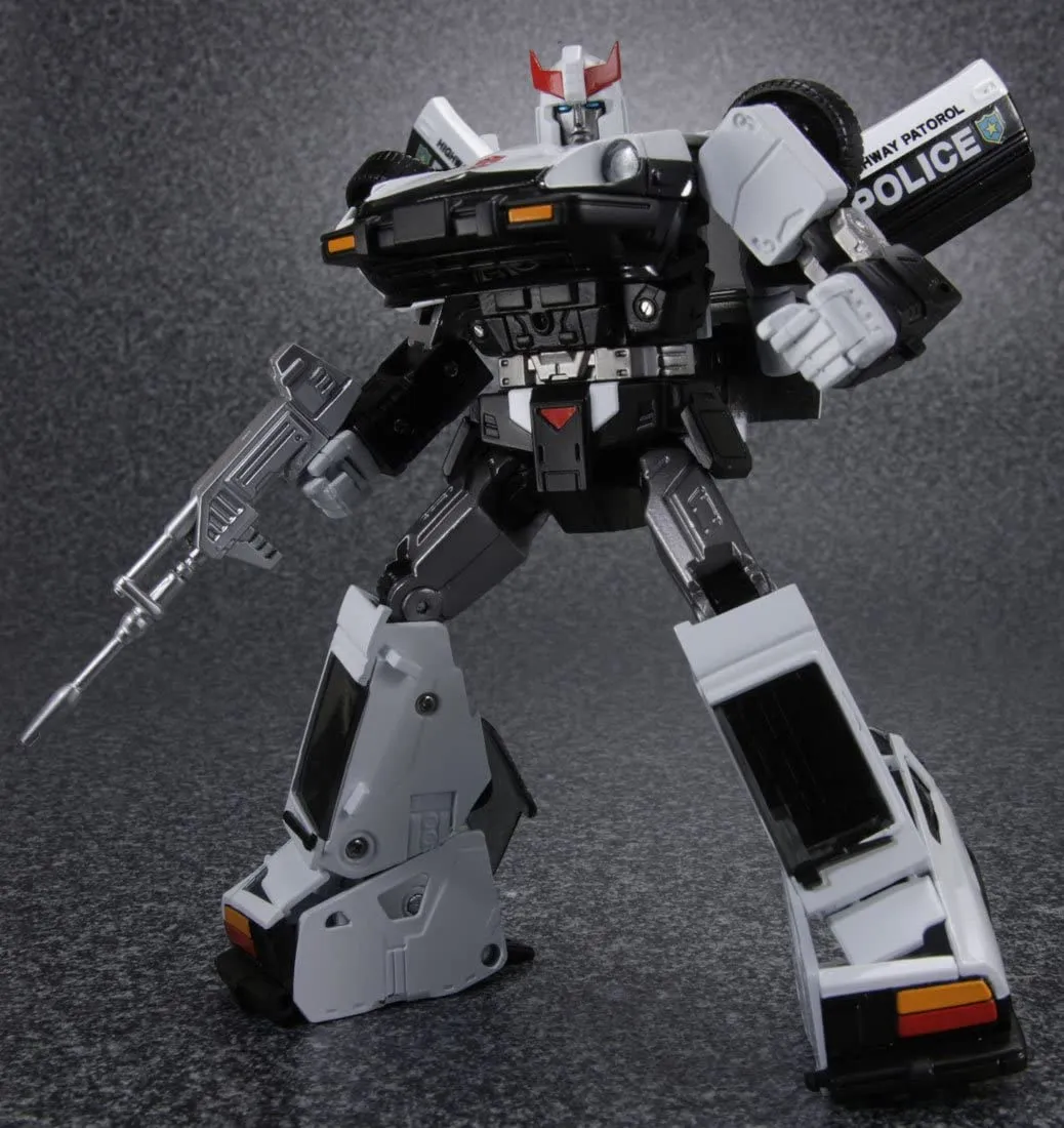 From Takara Tomy Transformers Masterpiece MP-17 Prowl stands an impressive 6.5-inches tall in robot mode. Not only is this figure incredibly detailed, but it comes packed with an extinsive array of accessories. MP-17 Prowl is highly articulated and transforms from a Nissan Fairlady 280Z-T Police Car to robot and back and as a Masterpiece scaled figure scales with other MP scaled figures in the Transformers Masterpiece toyline. Masterpiece Transformers offer an extreme high attention to detail and jump straight out of the Transformers movies and TV series and into your collection.