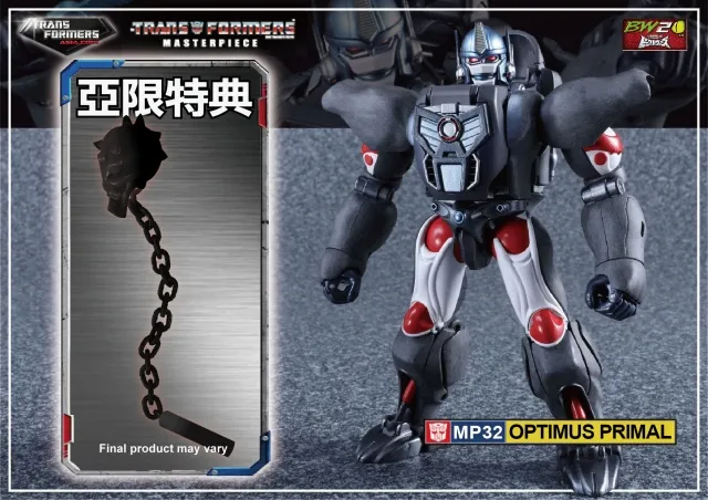 From Takara Tomy this is the Transformers Masterpiece MP-32 Optimus Primal Die-Cast Mace that Commemorates the release of the toy of the same name. MP-32 Optimus Primal Die-Cast Mace comes in a paper Transformers themed box that matchs the look and theme of the respective figure. Figure sold separately.