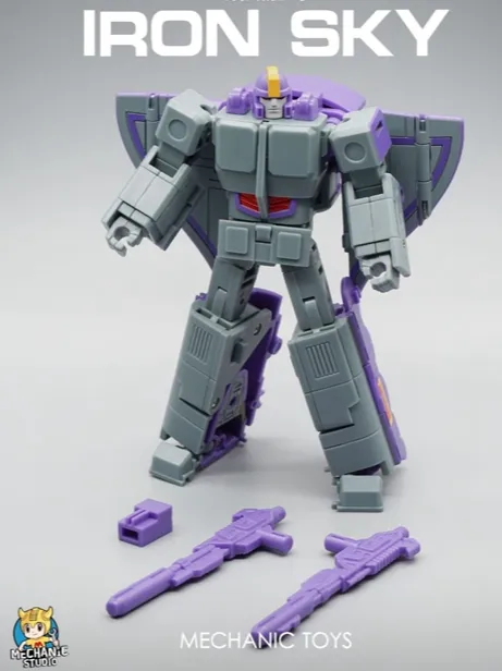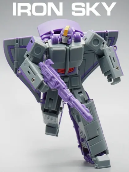 From Mechanic Studio, the MS-20 Iron Sky figure stands about 4 inches tall and can transform from a robot to either a train engine or space shuttle. MS-20 Iron Sky includes several pieces of weaponry.