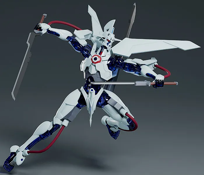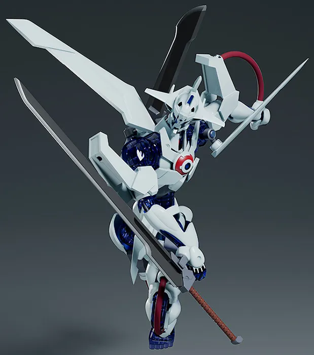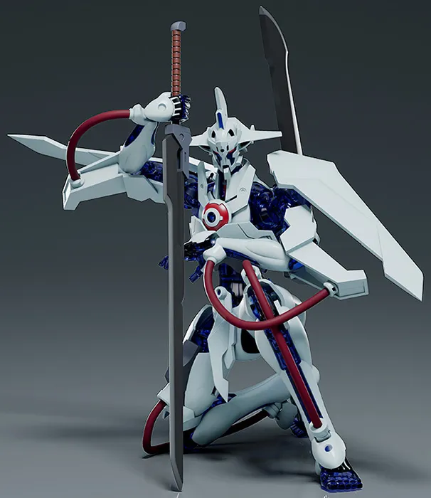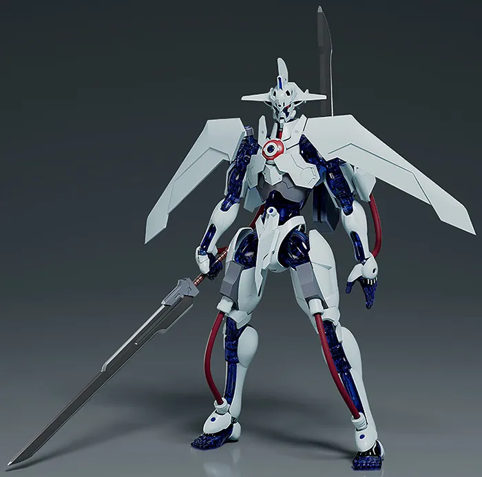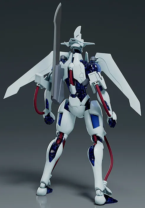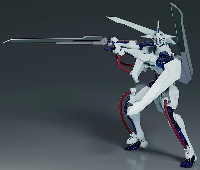 Dann of Thursday can also be transformed into sword mode with the use of some interchangeable parts. The various parts of the mecha have been separated into different colored runners and pre-painted parts, making it easy to recreate the mecha from the series with a simple assembly.